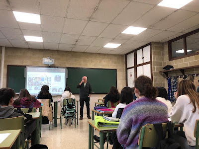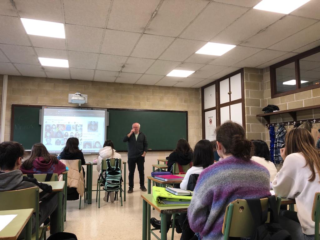 O escritor Manuel Lourenzo Gonjzález mantivo co alumnado de 3º ESO un encontro para falar da obra de Rosalía de Castro .
